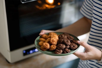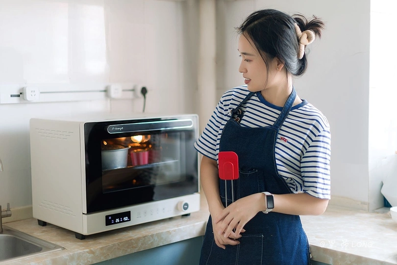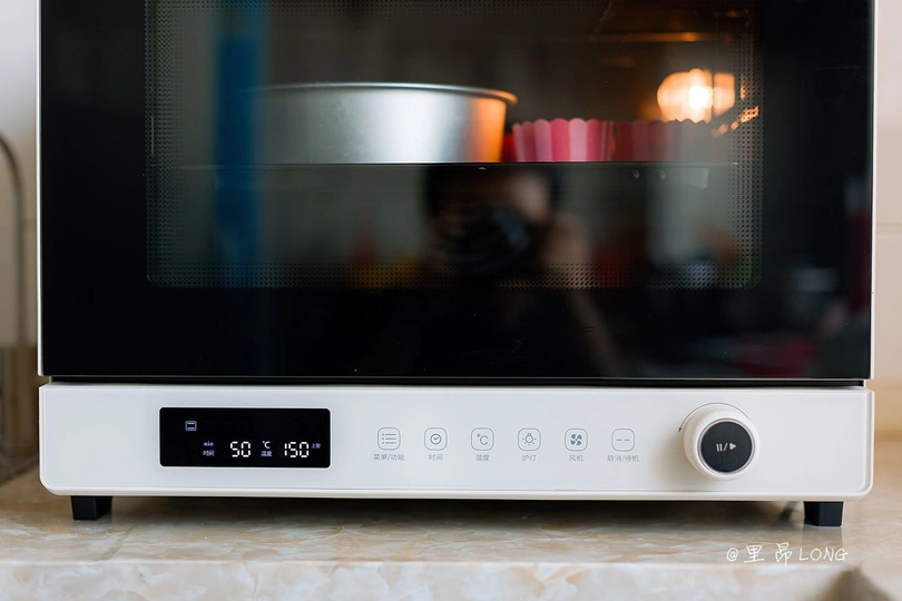 ▶作为长帝新款旗舰产品,这款长帝大白鲸风炉烤箱,不仅有上下双层独立控温发热管,背后还有带风炉的双层发热圈,一共六根发热管加风炉循环热风,让整个烤箱内部温度均匀,实现三层同烤不烤糊,省事省力更省心。 ▶内部全部升级了更加方便清洁的搪瓷内胆,不沾油,一擦即净,彻底解决了烤箱内部难清洁的痛点。经常用烤箱的都知道,每次烤完食物,尤其是烤鱼烤鸡等油腻食材,擦拭内部都是难题,这种德国认证的搪瓷内胆,用湿布一擦即净,清洁起来非常省力,这就让烤箱的使用率大大提高。 ▶作为专业烤箱,独立控温是不能少的,背部风炉和上下发热管可以单独调节控温,都是基础操作,温度调节范围从30℃-230℃宽范围可调,支持发面、干果、酸奶、解冻等低温加热,也支持空气炸、烘干、煎烤等高温烘焙。 ▶烤箱内多个电子感温探头,可以精确控温在±5℃内,3层同烤也能上色均匀。所以说如果你总是烘焙失败,可能就是烤箱控温不给力哦~ ▶内置19个智能菜单,常做的食谱都有了,戚风、吐司、披萨、蛋挞、烤鱼、空气炸鸡翅等等,一键开启,自动控温控时,省心省力的同时,智能的菜单让每一次烘焙都成功~