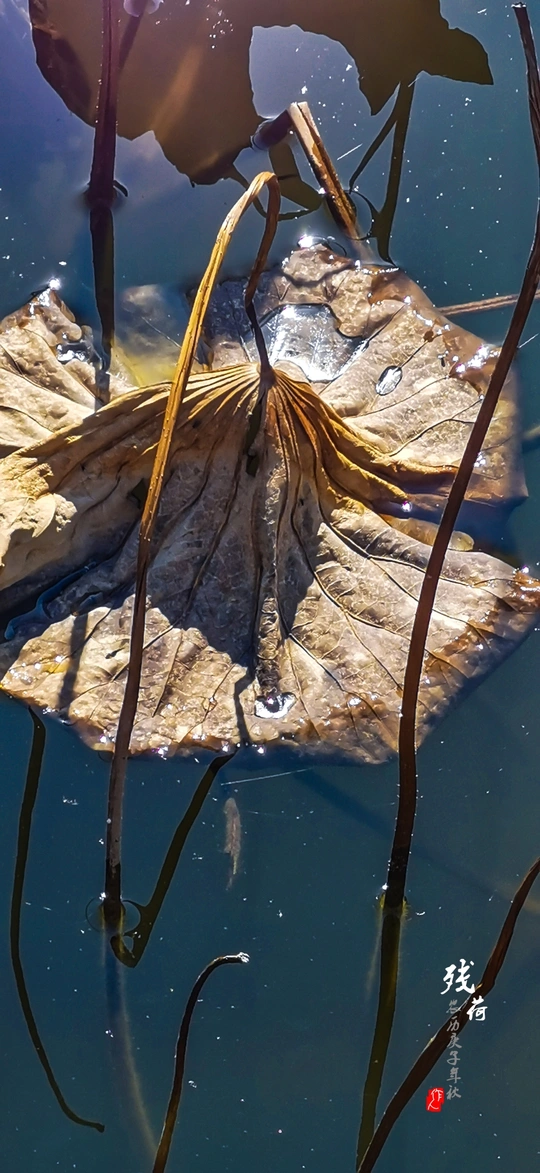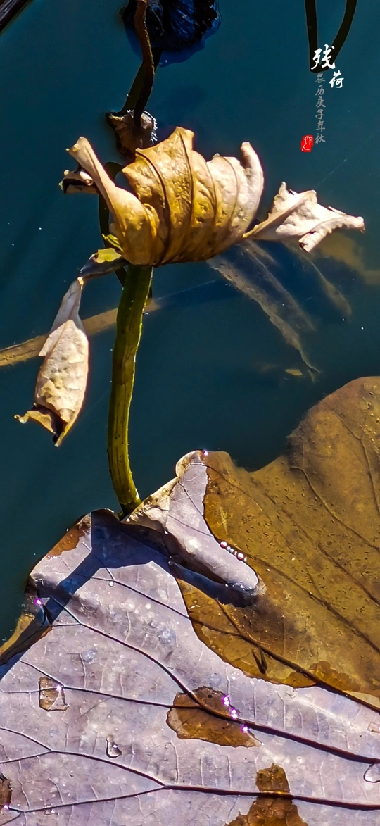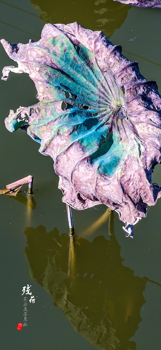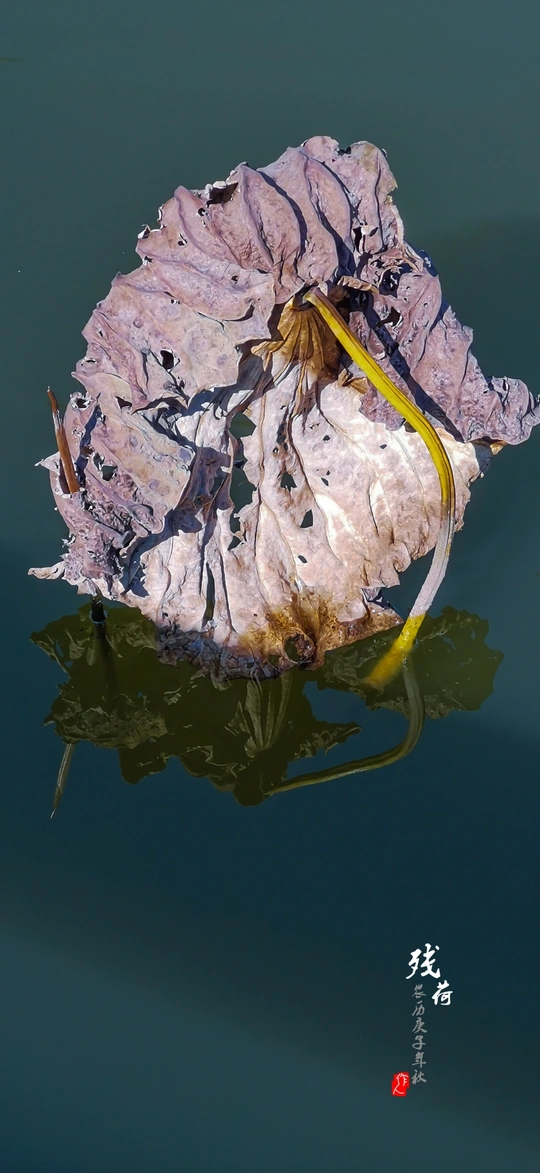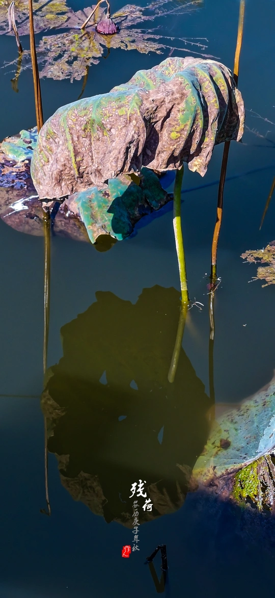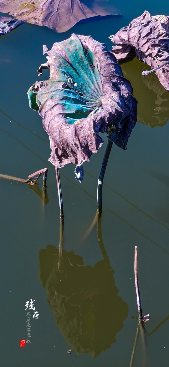 满眸繁华,留得这一池清骨。风中清冷,雨中寂寞。横斜瘦弱,摇曳萧索。 残荷,残荷,苍天下,秋色里,平添一份高雅,拥有一份高洁。残荷,残荷,夕阳下,晚霞中,饱读沧桑冷暖,释怀悲伤离合。把残缺和美丽,冰冷和热望,一起轻轻述说。