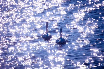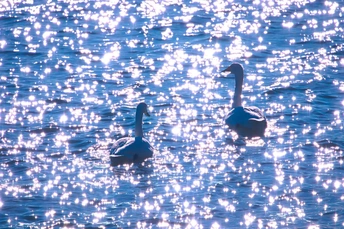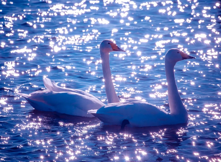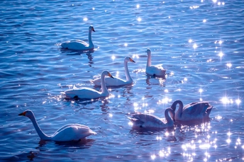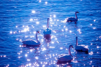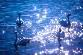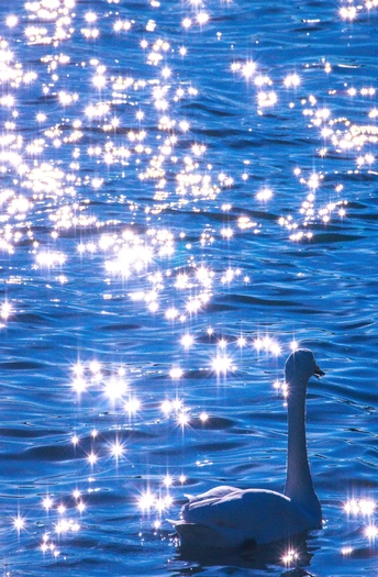 湖面在阳光的照耀下金光闪闪。在湖 的左边,清澈的湖面上,有十九只天鹅缓 缓游动,轻悠悠的身影倒映在湖面上。那 平静的湖面像一面明亮的大镜子,倒映出 它们那高雅美丽的身影,就像舞蹈演员在 翩翩起舞。 一 会儿,它们又开始互相追逐 嬉戏,忽而抖抖身上的水珠,伸长细细的 脖子扁黄的嘴在水中寻找可口的食物,忽 而一个猛扎下去,把头和脖子深深地埋在 水里,雪白的尾巴翘得高高的,好像个白 色的小孤岛!