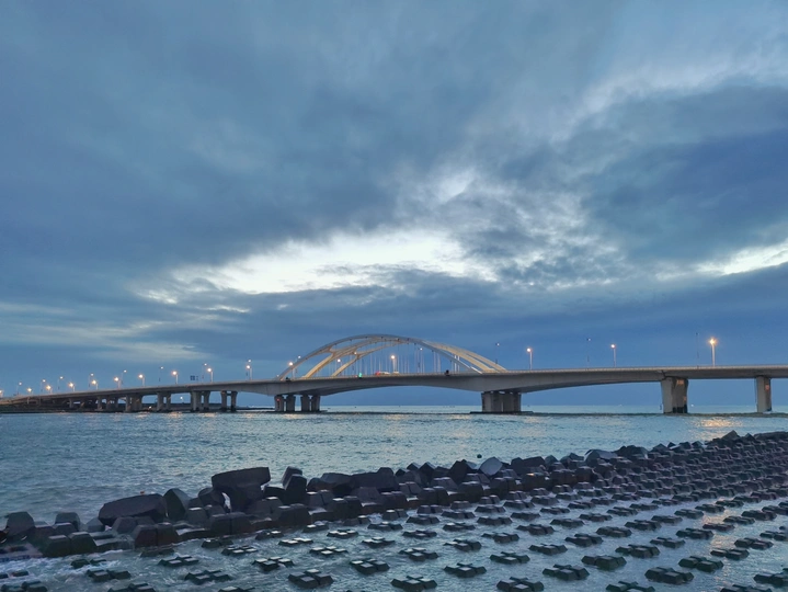 新津河大桥,从建成就刷爆屏,堪称汕头史上最红的一座桥,也被称为“网红桥”,新津河大桥是东海岸大道的重要组成部分,横垮新津河入海口,连接新津、新溪两大片区,全长937.2米,双向八车道,设计时速60公里/小时,自开建便自带“网红”光环,建成亮灯时更是刷爆屏,不仅仅汕头市民,许多周边城市的市民还特地驾车前往观赏,名副其实的“网红桥”! 新津河大桥位于华侨经济文化合作试验区的东海岸新城,新津河大桥和外砂河大桥均已贯通。这两座大桥连接新津、外砂、塔岗围三个,是东海岸大道的重要组成部分。新津河大桥全长937米,外砂河大桥全长1870米,双向八车道,设计时速60公里。车辆可从海湾大桥旁或中山东路进入东海岸大道,通过两座大桥直达莱芜,通往南澳大桥,一路可赏海上风光和新城美景。