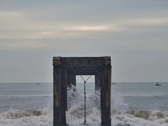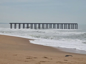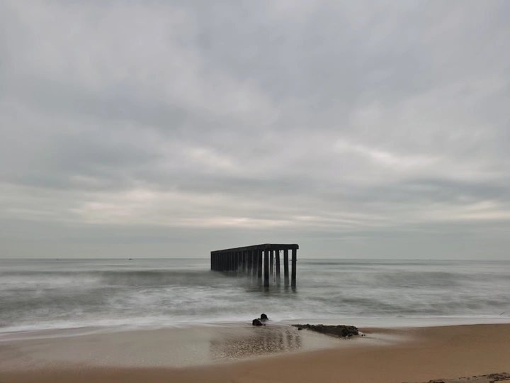 龙虎滩在竞海村附近的海滩,有一段与陆地断开的栈桥。