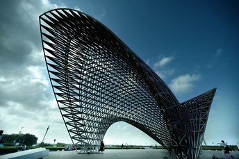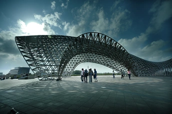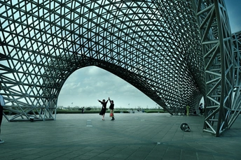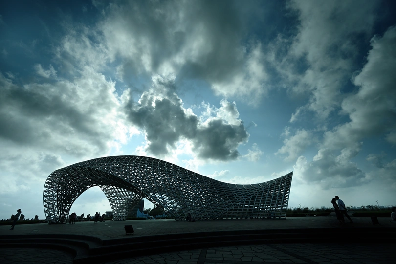 上海南汇嘴() ——————— 上海南汇有司南, 先人始用浮于船。 航海用他指方向, 大海之中好识岸。 鱼衔磁石分北南, 惊涛骇浪保平安。 大海航行靠舵手, 辨明方向扬远帆。 上海南汇嘴有一个司南,公园有标志性雕塑是用不锈钢管建成的网架‘司南鱼’(指南针)造型。