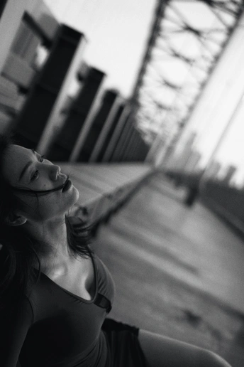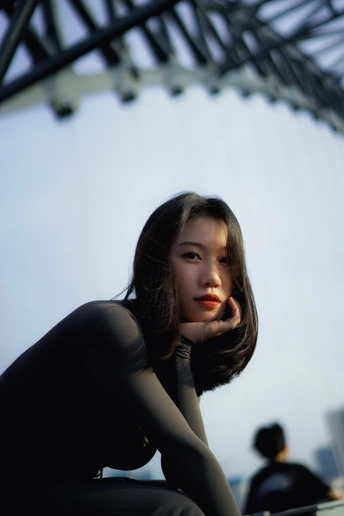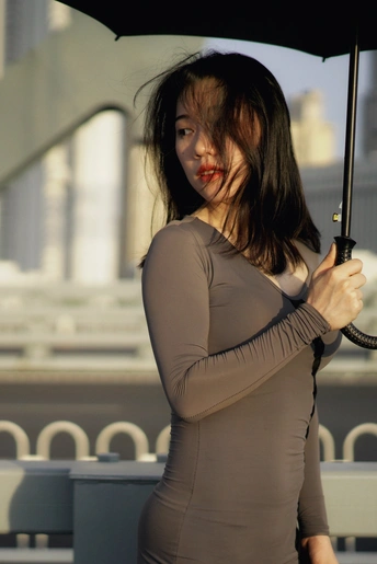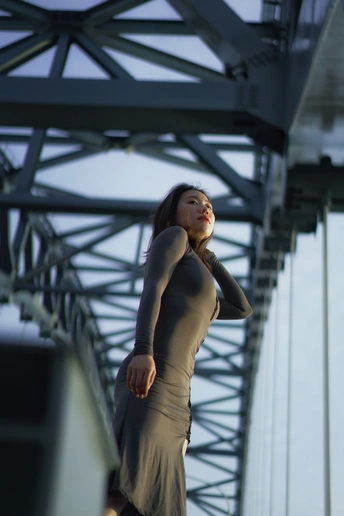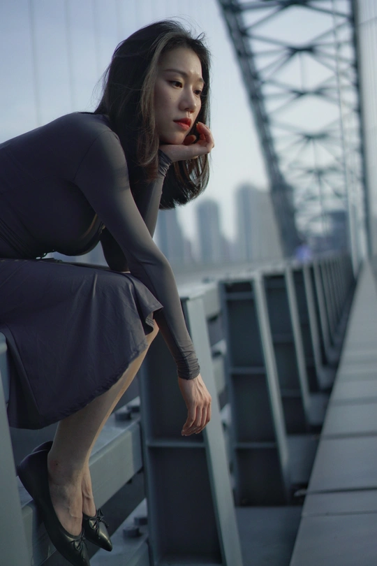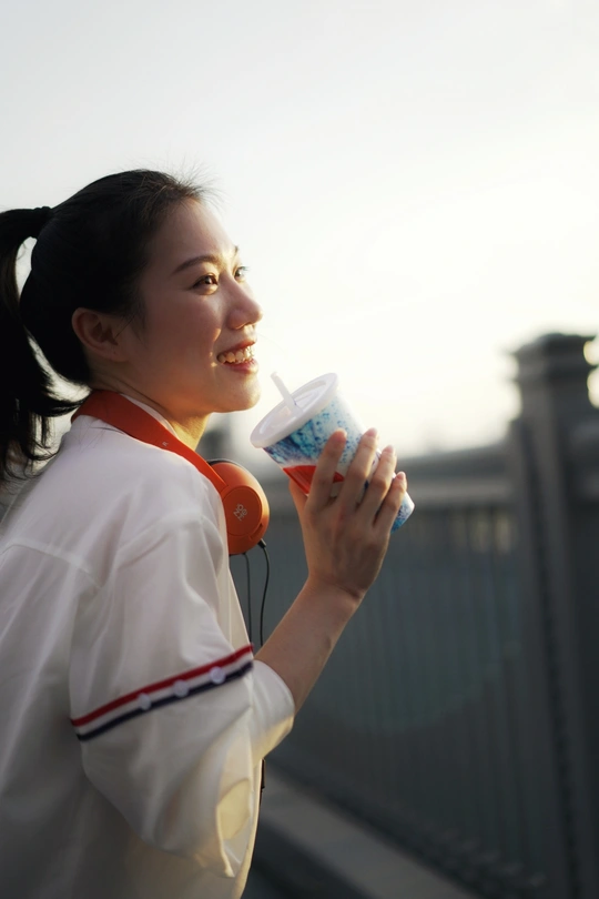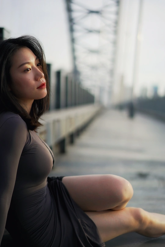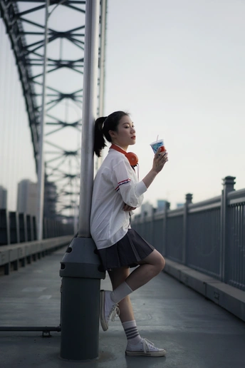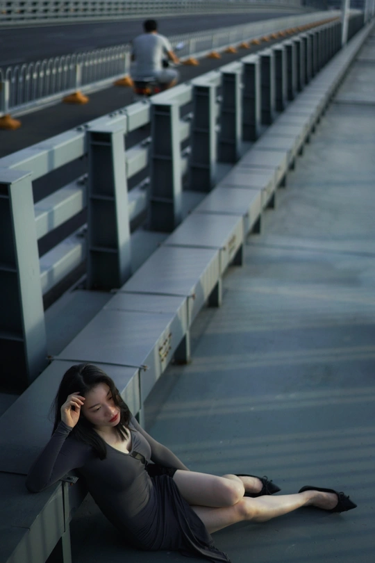 夕阳给人镀了一层金边。 我还顺手拍了一张风景。 咸蛋黄般的红而不刺目的太阳从 桥外两栋高楼的夹缝里, 缓缓落下。没有云霞。