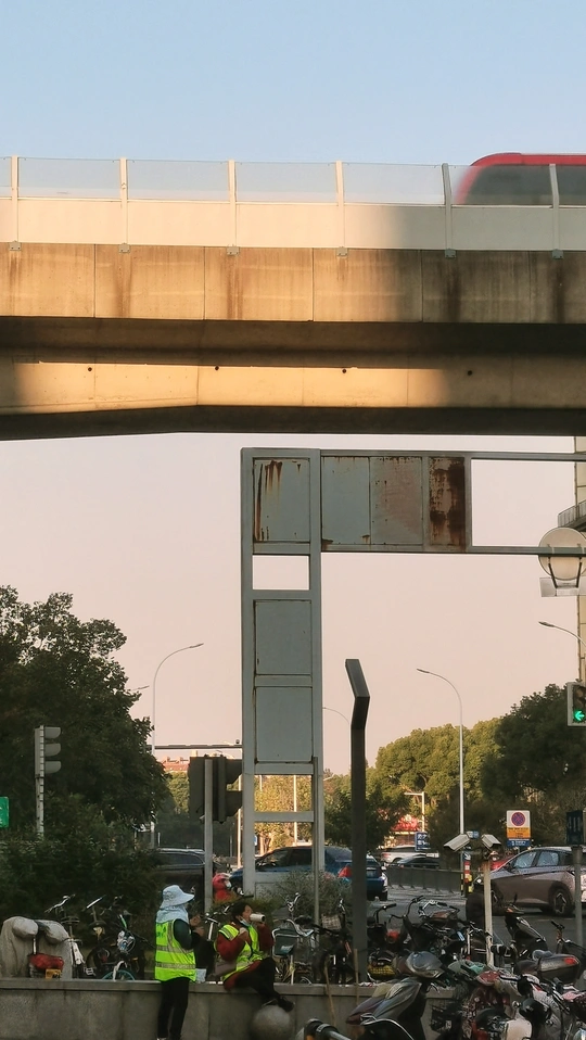 每天必须经过的地方,二位城市保洁的阿姨在吃早饭。