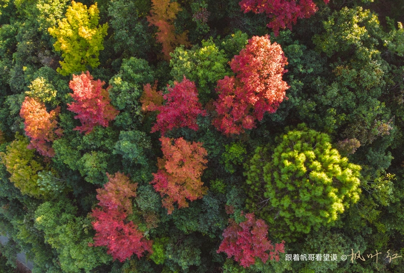 11月3日,贵州省黔西南布依族苗族自治州望谟县蔗香镇望南村,这里地处红水河边,全年气候温暖怡人,立冬时节,山上的枫叶才开始红了。 这里的枫香树都是原始品种,因此枫叶红的颜色五颜六色的,深秋时节漫山遍野姹紫嫣红,甚为好看。所以称之为“望谟红”。