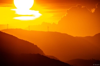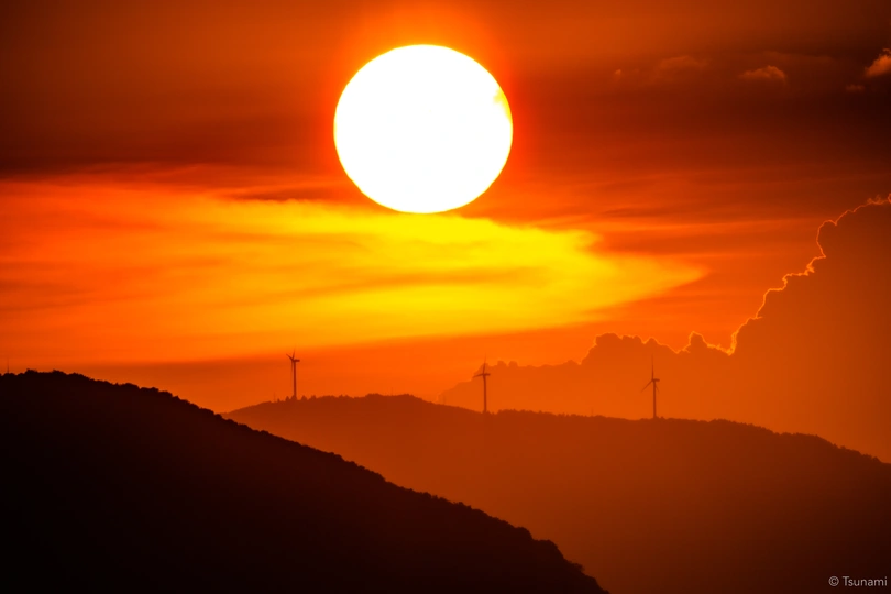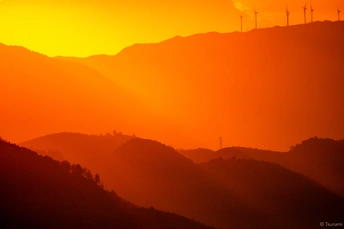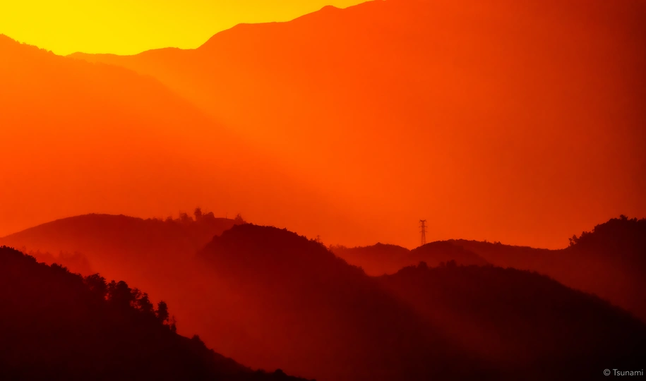 长虫山的日落时刻 远处的山峦带有薄薄的雾气,在夕阳的映衬下变成了金黄色