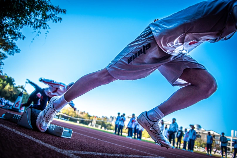 200米的起跑,通过广角镜头造成的视觉畸变带来一定的冲击力来展现运动员起跑的力量感。 @米拍 @米拍社长