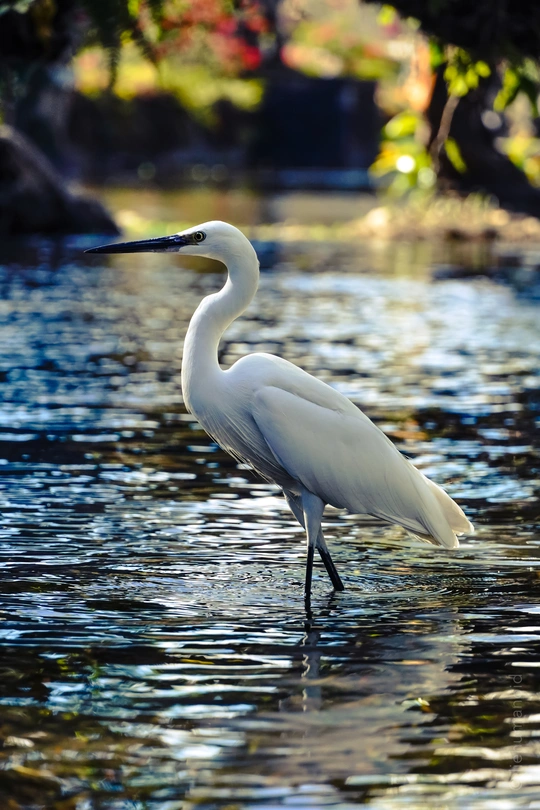 核酸回来的路上偶遇一只觅食的小白鹭.