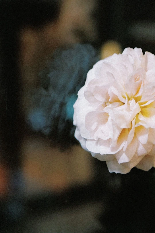 这朵花开了蛮久 颜色从深至浅 仿佛墨水都不够了 夜晚的灯光将它映在栏杆的玻璃上 竟然有一分迷离的美