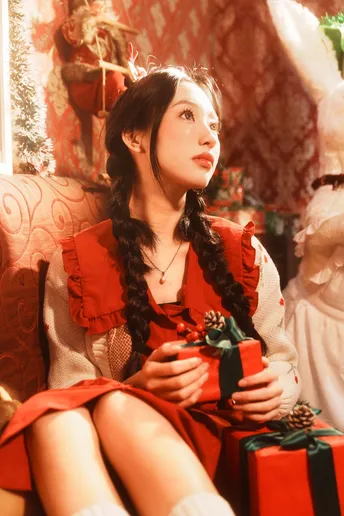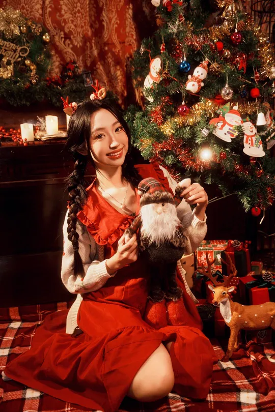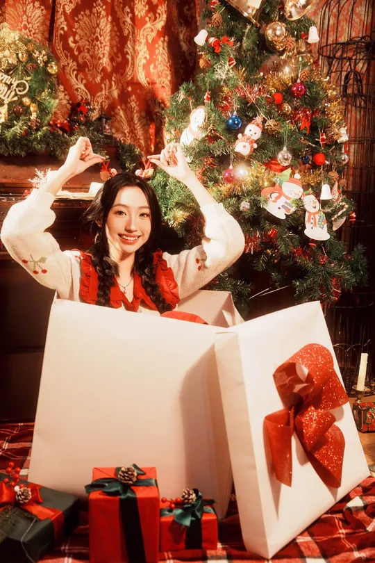 地点:广州南沙的浪漫收藏家写真馆 布光:侧背面一盏红头灯打亮场景发丝营造氛围,正面一盏神牛led灯补面光。通过常亮灯打亮圣诞树的挂件营造出闪亮亮✨的效果。再加上海大的4/1黑柔让高光晕开把整体的氛围提起来了。 焦段:这一次使用的是一枚适马的2470兼顾了小广角半身和特写的画面拍摄非常合适。构图建议横平竖直一些让画面平静突出人物的表情和部分环境。 姿势:动作可以参考我的部分图片主要还是与环境互动以及人物的情绪。 @米拍社长 @米拍汽车 @米拍摄影学院 @米拍编少