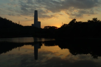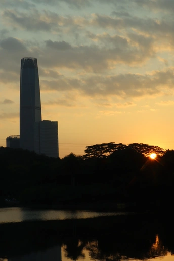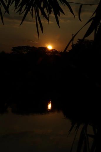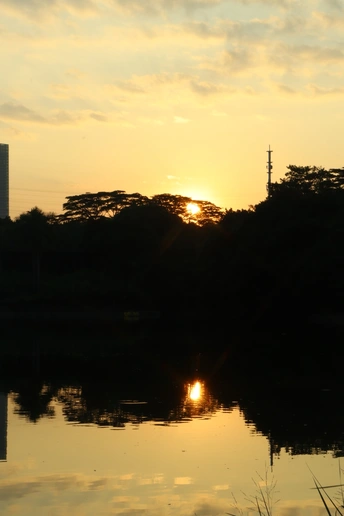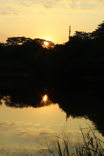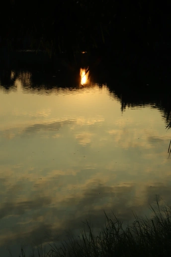 落日的夕阳照落到湖面