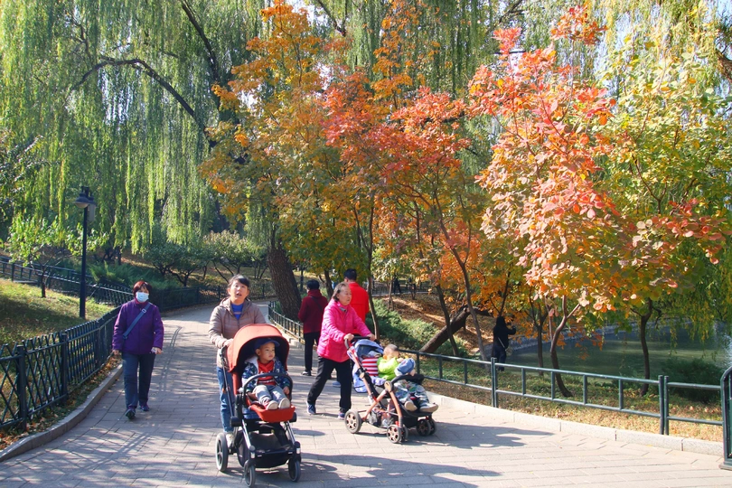 帶孩子到合园游玩一摄于北京市紫竹院公园