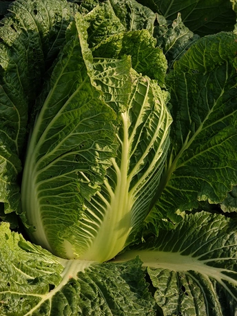 大白菜含有丰富的粗纤维,不但能起到润肠、促进排毒的作用又刺激肠胃蠕动,促进大便排泄,帮助消化的功能。对预防肠癌有良好作用。秋冬季节空气特别干燥,寒风对人的皮肤伤害极大。白菜中含有丰富的维生素C、维生素E,多吃白菜,可以起到很好的护肤和养颜效果。我还有药用价值:祖国医学认为,白菜性味甘平,有清热除烦、解渴利尿、通利肠胃的功效,经常吃白菜可防止维生素C缺乏症(坏血病)。 大白菜几乎伴随我们整个秋冬季节,从长出幼芽到绽放出美丽的花朵,其无私而高尚的品格最让我感动!纵观白菜成长的过程我们总能感知到它的朴实无华和永不张扬的性格,它总是喜欢把自己的心紧紧的包裹着,实实在在的成长着。在严寒的冬季,当百蔬都畏惧严寒而不能生长时,它却在寒冷到来的时刻走入了百姓的家中,无私的奉献着自己的全部。 因此,在漫长而又无聊的冬季,大白菜是百姓之家饭桌上面常见的蔬菜,亲切、朴实,最为贴近生活。生着可食,炒熟即吃,多种烹饪方法。可以充分发挥自己的想象,炒也可,凉拌亦可,没有任何讲究,充分体现出了憨厚淳朴的性格。