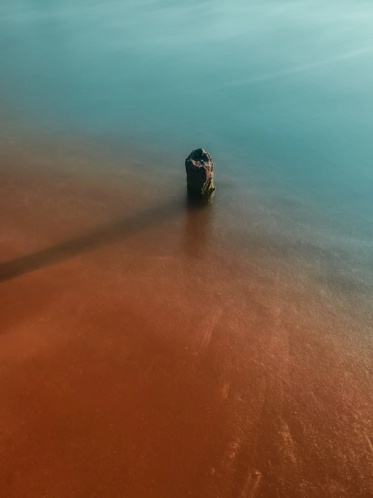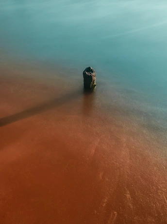 【vivo X90拍摄】 王官湿地公园 22年12月25日 此图vivo X90王官湿地拍摄,看到沙滩上的树桩,拿起手机时光慢门模式拍摄,拍摄时就看到了两个颜色,预想后期,中心点对角线,黄金分割线,构成画面。