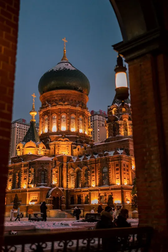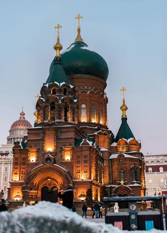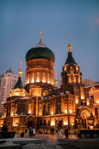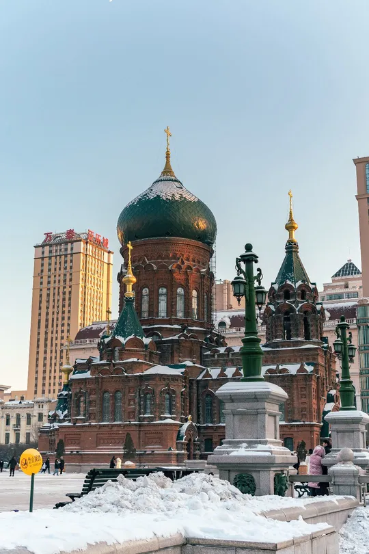 带着心爱的人一起去一次下雪后的索菲亚教堂吧
