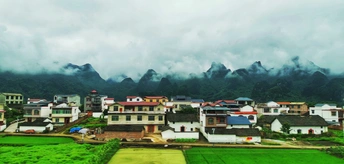 高铁疾驰而过,视距的变窄,并没有阻碍手机捕捉美景。一个村落,傍山而居,村落后是峰林林立,有氤氲雾气相伴,俨然是一幅原生态山居图。
