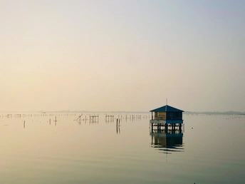 每次来淀山湖,总觉得这小木屋好孤独,但又觉得它很坚强,不管风里雨里,白天黑夜,都中流湖面,孤独之美