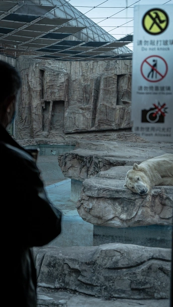 北京动物园里,北极熊的最大运动量,可能就是翻个身,抬个头了吧。
