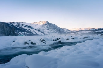 拍摄于新疆喀纳斯,“雪馒头”是当地的特色,给纯洁的风景增添了趣味。
