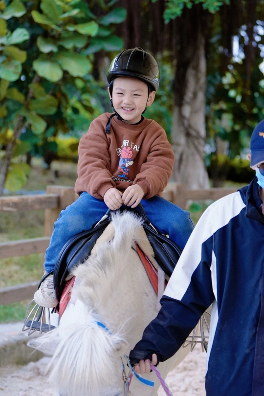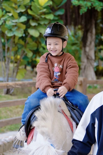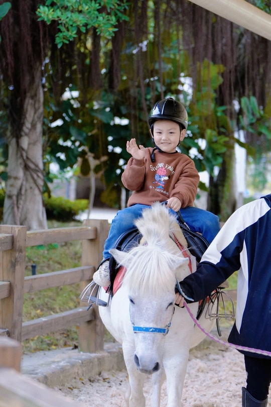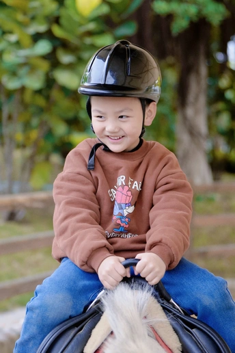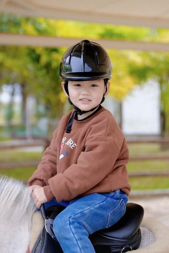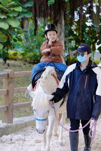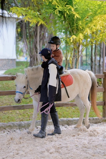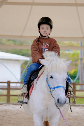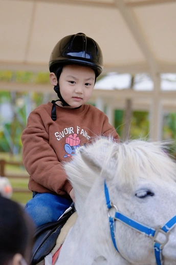 帅气的小朋友骑上帅气的白色骏马 精气神一下子提升不少