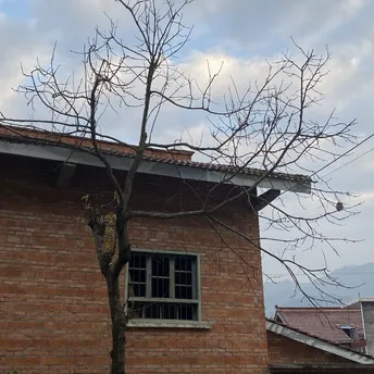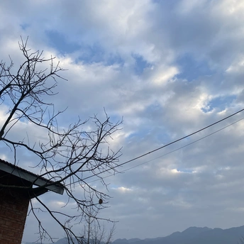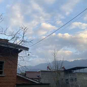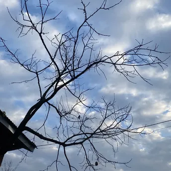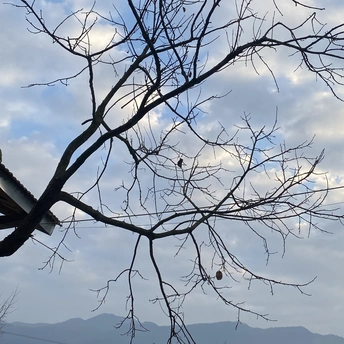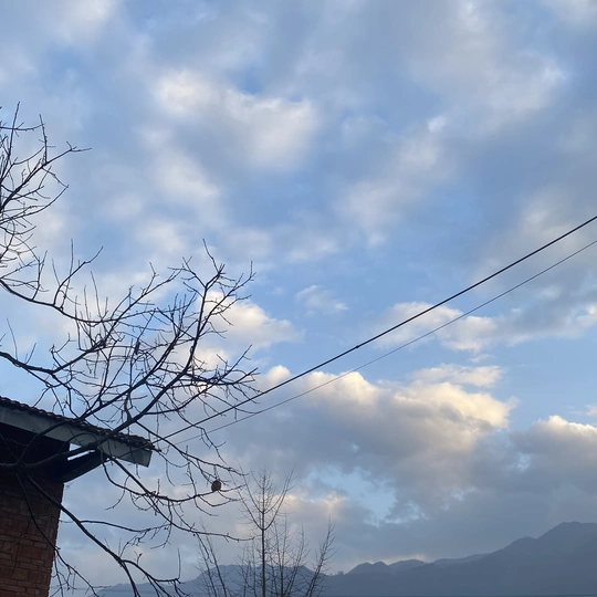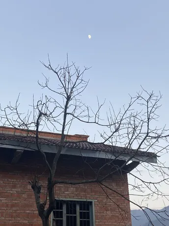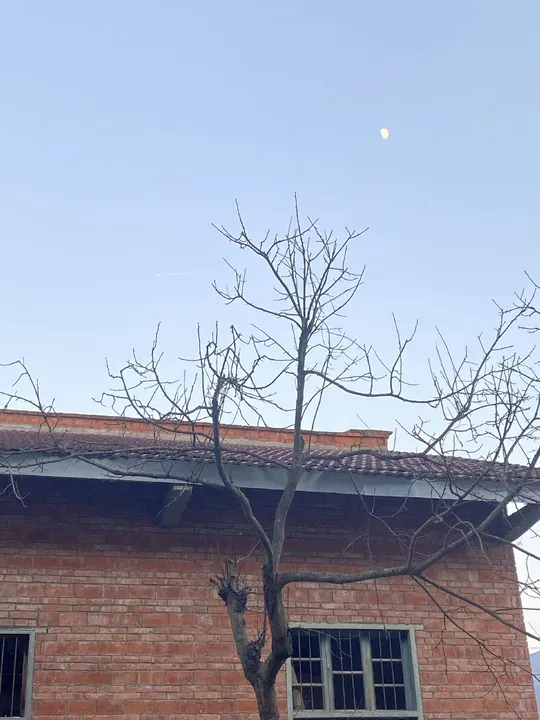 傍晚时分 看着晚霞 欣赏月光与光秃秃的柿子树也能遇到一副治愈的场景