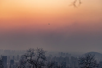 照片拍摄于合肥市大蜀山的山顶 日落的时候的阳光和光晕特别好看