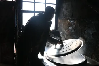 一位农村里的老人正在打开锅盖,准备吃饭,抓拍到了这一时刻。