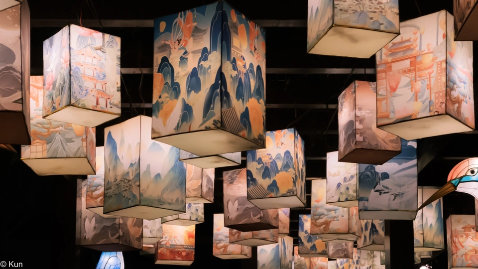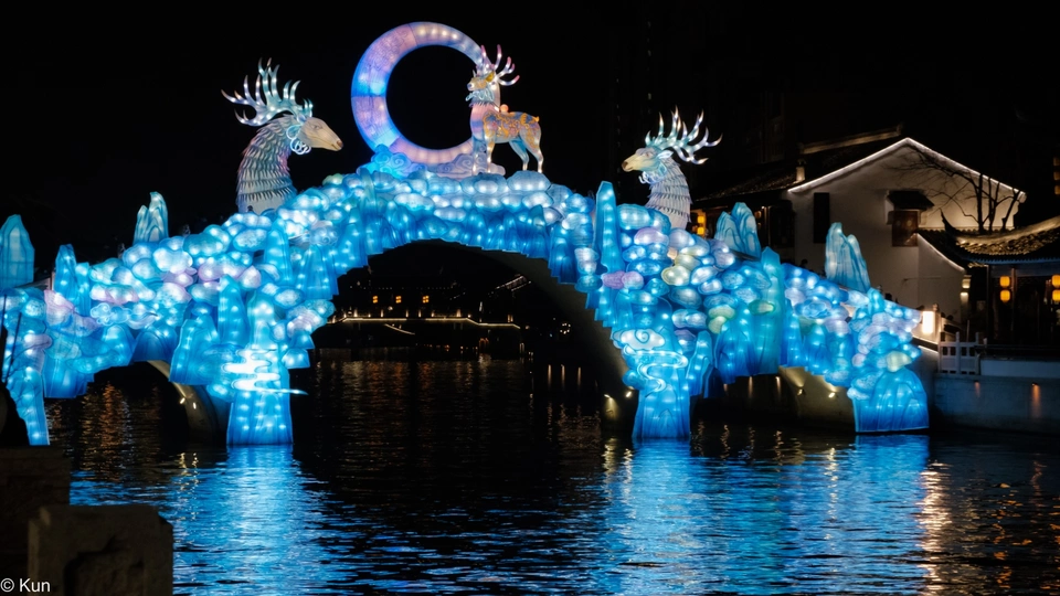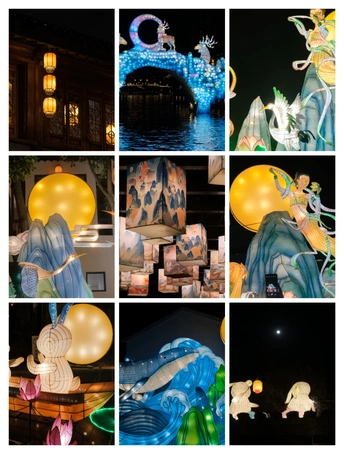 在斜塘老街为你点亮一段苏式浪漫时光! 领略苏州灯彩的光影之美灯展以“自然有生趣”为设计主题,结合国家级非物质文化遗产苏州灯彩,以中国传统文化,元素为创意核心 通过青绿山水和古典诗词营造场景氛围。