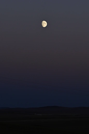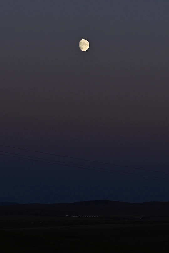 黑山头看完日落,一回头看到这样一幅画面,夕阳西下归何处,明月高悬照古楼