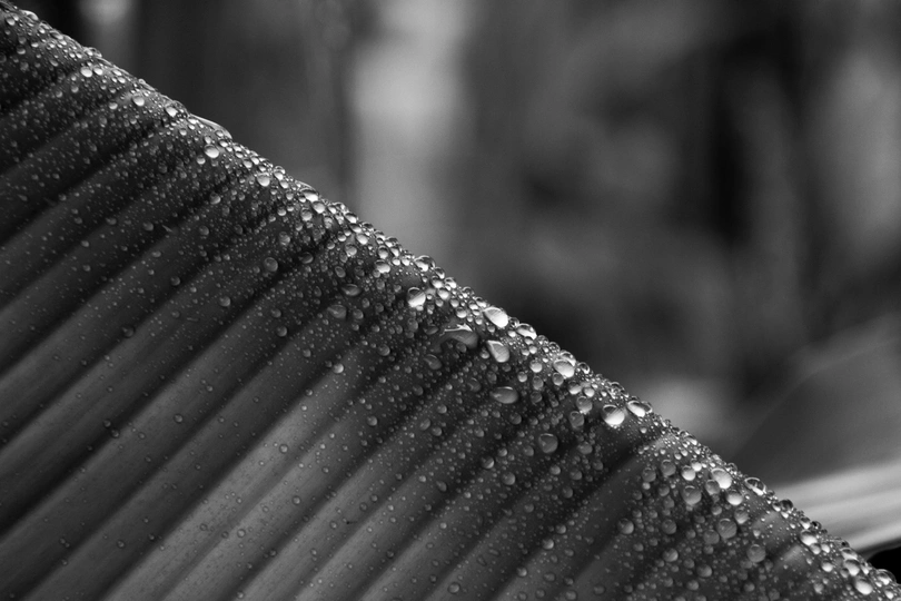 雨后初晴,雨点们矗立在芭蕉叶上,似粒粒珍珠,晶莹夺目