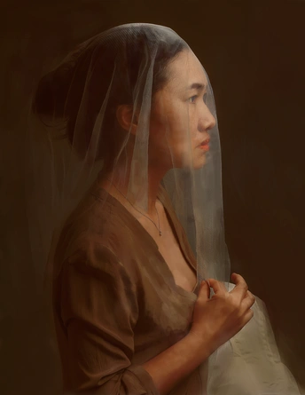 想有一张古典风格的自拍 面纱的细节很迷人 灯光加深了古典的氛围 保留了细节的同时 模拟了油画笔触 于是有了这张自拍作品by YeStudio