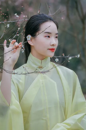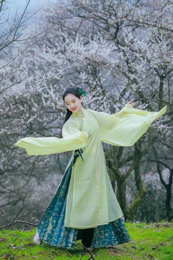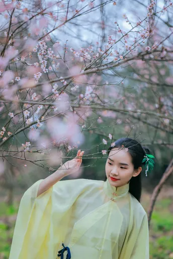 2.11,大邑黑虎岗。踏春行,山野间,漫山青梅,浅白粉红,山花烂漫,她在丛中笑。出镜:相柳。#感知春天来临的瞬间 #一起拍春天 #拍一组春日氛围感写真 #佳能5D4 #汉服 #成都约拍