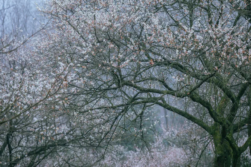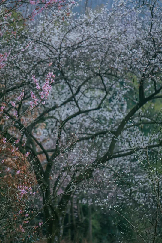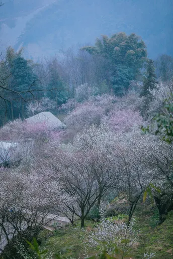 成都一印象派的春天。山间的青梅林,深深浅浅,是少女轻摇的裙摆,是林间风的低语。