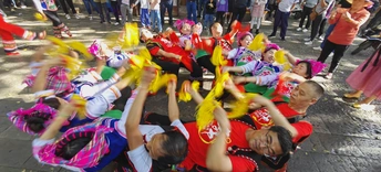 2022年11月20日,使用P50手机拍摄于云南省建水县建水古城。彝族烟盒舞又称“跳弦”,是云南彝族支系尼苏泼的一种群众性民间舞蹈;舞蹈时,因每人两手各拿烟盒弹跳起舞而得名;舞者手持圆形木制烟盒,在音乐的伴奏下,弹击盒底击节作舞,节奏明快,气氛热烈,动作流畅潇洒,极富艺术感染力;舞者分别躺在后面一个人的身上,围成一个园,穿花图形组合新颖,造型优美,配合巧妙和谐,欢快热烈,美轮美奂,让人目不暇接。