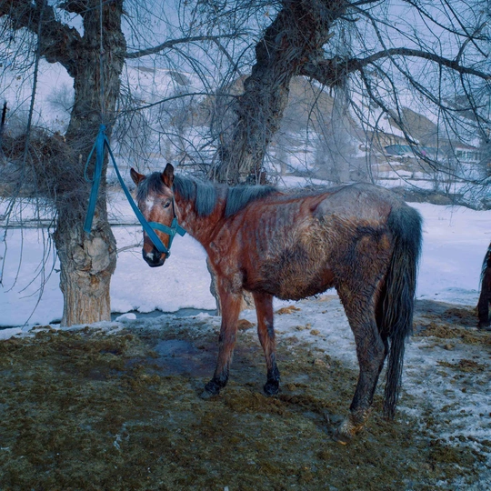 这组拍摄于新疆伊犁边境地区的影像,想要表达的是哈萨克族同胞在冬季休牧时期的日常生活状态——虽然身处冬季,不需要劳作和赶场,人们休憩在家,但仍旧能够感受到这个民族蓬勃旺盛的生命力。作品从肖像、室内和室外空间环境三个方面着手去呈现哈萨克族在寒冬到初春下的生命状态,视觉语言整体较为含蓄婉转,尽可能减少作为创作者的主观意识,希望能够给观者更多地观看和思考的空间。同时,影像整体也意在打破大众对于哈萨克族的固有认知——转场,目前很多的哈萨克族少数民族影像或多或少抱有猎奇视角去单一呈现哈萨克族的转场画面,但我相信,这个悠久和壮大的民族并不只有这一面。
