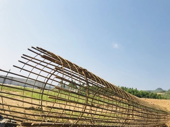 工地上一条废弃的钢筋笼子