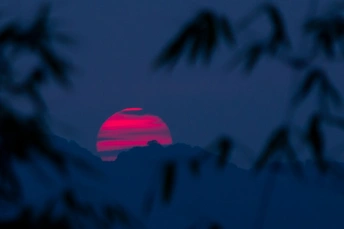 日落时分的太阳颜色有时美得不太真实,可它就是这样有点赛博