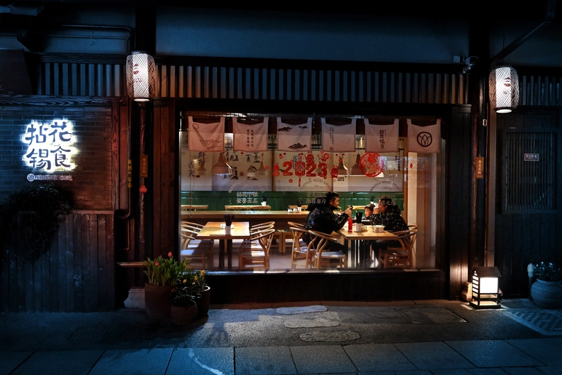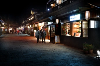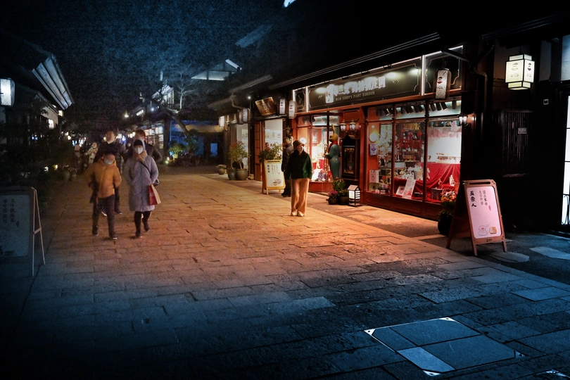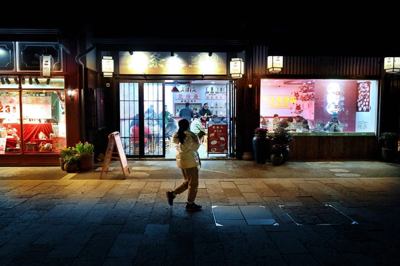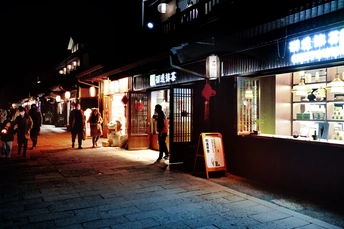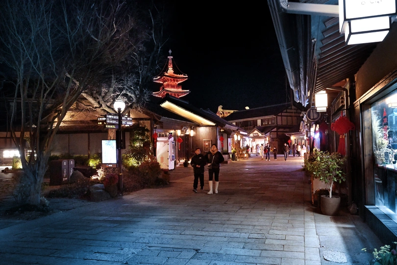 夜色 ———() 黑色拥抱白日街, 阴阳轮换不停歇。 斗转星移会黎明, 日月正盈还会斜。 在拈花湾唐街上拍摄的,因为时间短,拍摄时夜晚没用脚架,本用了冷调子与灯光 的暖色相持了。