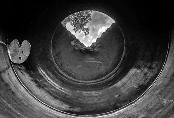 偶然看到的一口水缸,站在边上看到了神奇的倒影,以及构成的有趣几何图案,与水缸上漂浮着的小荷叶形成了呼应。