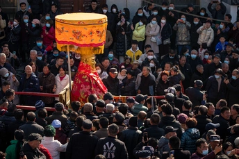 接城隍是西安市户县北部乡村古老的民俗活动,户县迎祭城隍活动在历史中按地缘形成了三个城隍社,轮流祭祀着三个 姓名不同的城隍神。渭河南岸一带十九村为一社,奉纪信为城隍,称为大城隍。迎祭的规矩是城隍爷在每个村子享祀一年,每年正月十二,由下一个村子迎至本村祭 祀。
