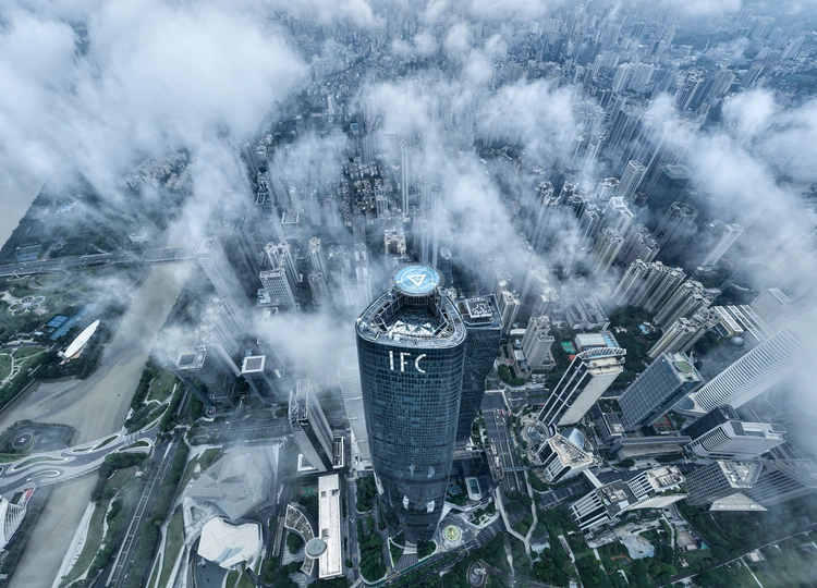 刚下完雨的清晨,城市高空云层上俯瞰,一座座高楼犹如雨后春笋般,@米拍小助手 @米拍社长 拔地而起