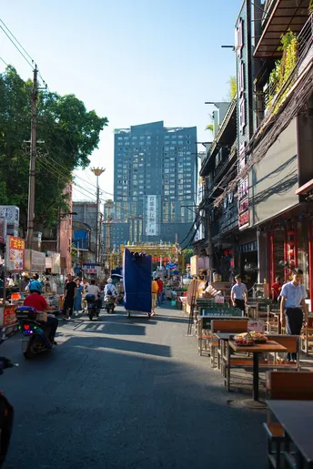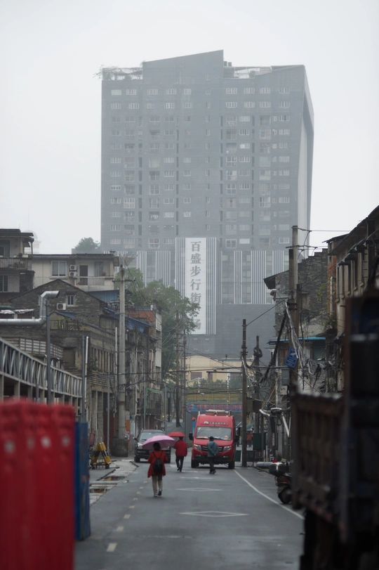 分别摄于2022初年和2023年初,拍摄地点大致相同。南宁市中山路步行街于22年末开始了改造工程,大量施工车辆驶入,街道头尾也架起了施工隔板,原有的小商贩也同时转移了他们经营多年的摊位…