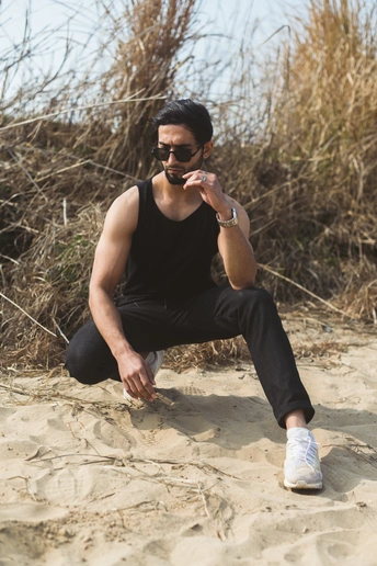 国际摄影师的感觉来了。巴基斯坦模特热情演绎。长沙拍出中东地块感觉。就去湘江变,那些水退去以后的沙滩,紧挨着芦苇地的地方。特别好拍照。简单的黑色搭配就能出很好的的效果。模特一身腱子肉。表现出男性的阳刚。(有需要男模的可以介绍)