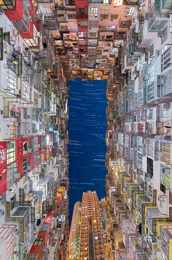 拍摄于香港鲗鱼涌,广角一架好脚架仰拍,锁上快门线,一边吃着楼下凉茶档的碗仔翅,各个国籍的住客出入这个容积率超高的社区,直到云来了开始下起毛雨就撤走。 第一次挑战超大光比的场景,地景多张连拍堆栈+曝光合成,最后无视地景过曝,强行拉高曝光参数拍微弱的星点,后期另外堆栈还原出明显的星轨。