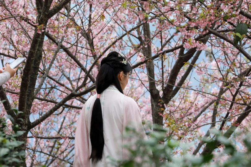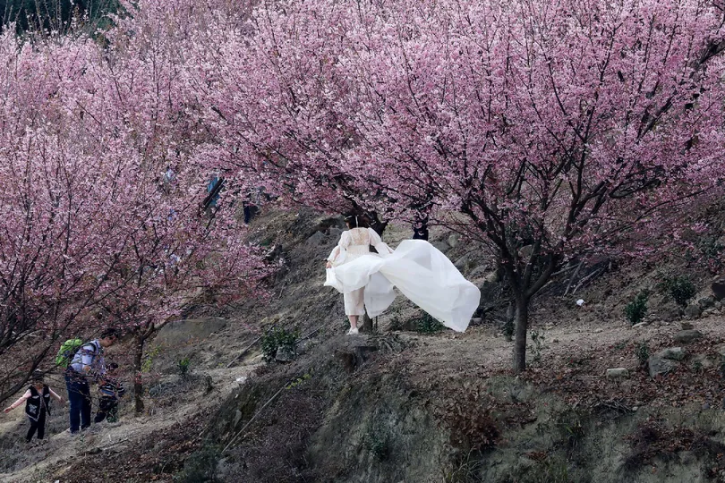 春天,万物甦生,樱花盛开。滿山遍野的樱花,引来了不管是姑娘还有老太太,她们都穿着各式各样的服装与造型,精心打扮一番,在这樱花盛开的小山村,留下美丽的倩影。