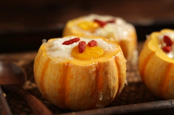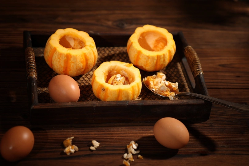 南瓜可以蒸着吃、烤着吃,做南瓜粥,还可以把里面的挖出来,打入鸡蛋蒸南瓜鸡蛋糕吃,总而言之,南瓜怎么吃都好吃,营养多多。 @米拍社长@米拍编少