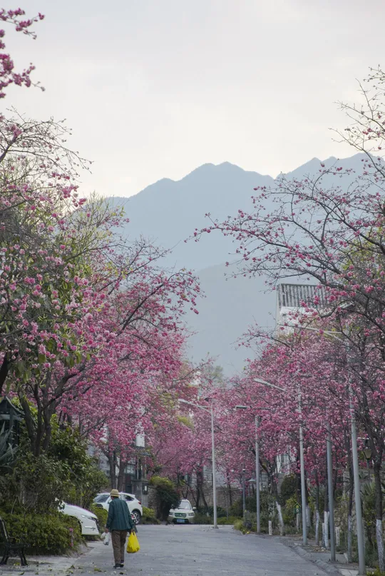 云南特有的红花高盆樱在大理各处肆意舞蹈