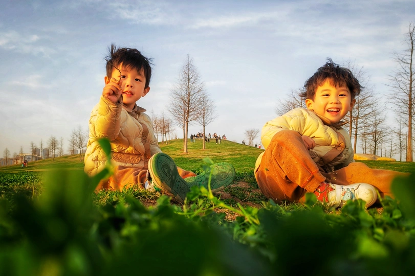 阳春三月,偶遇龙凤双胞胎,被她们的笑容感染了。