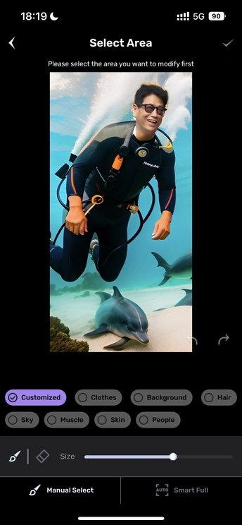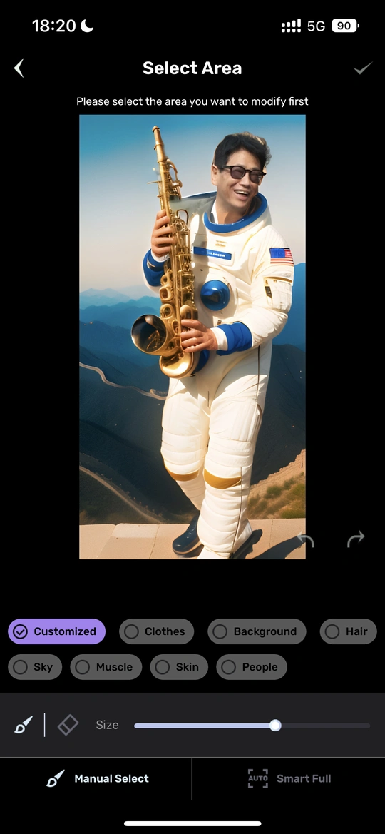 AI摄影,越玩越上手[呲牙] 以一张自己的照片为素材,AI可以带你 攀登珠峰、鱼翔浅底、遨游太空、上下航母…