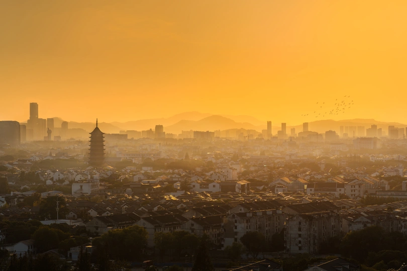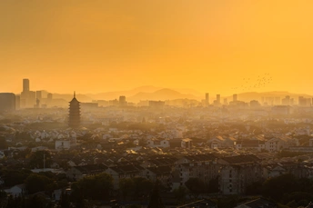 金色阳光下的姑苏城